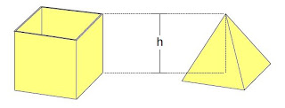 Imagina que tens um prisma e uma pirâmide com bases congruentes e com a mesma altura.